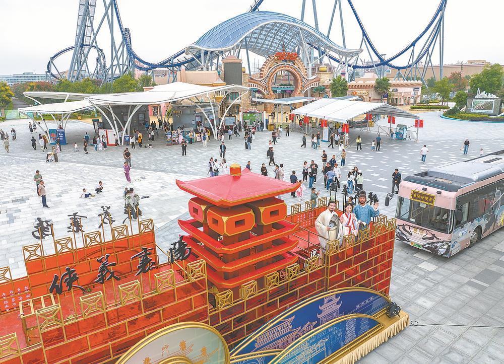 10月5日,“侠义向阳”主题游乐设施在华侨城奇幻度假区亮相,“郭靖”、“黄蓉”、“诸葛亮”、“黄月英”等人物与游客接触。 据了解,2025年“江山添彩——旅游IP城市巡游”10月1日在武汉举行,主题花车“侠义向阳”吸引众人目光。 “侠义襄阳”主题花车返回襄阳后,开始巡游,所到之处都吸引了众多游客热情“追星”。全媒体首席记者杨东图片