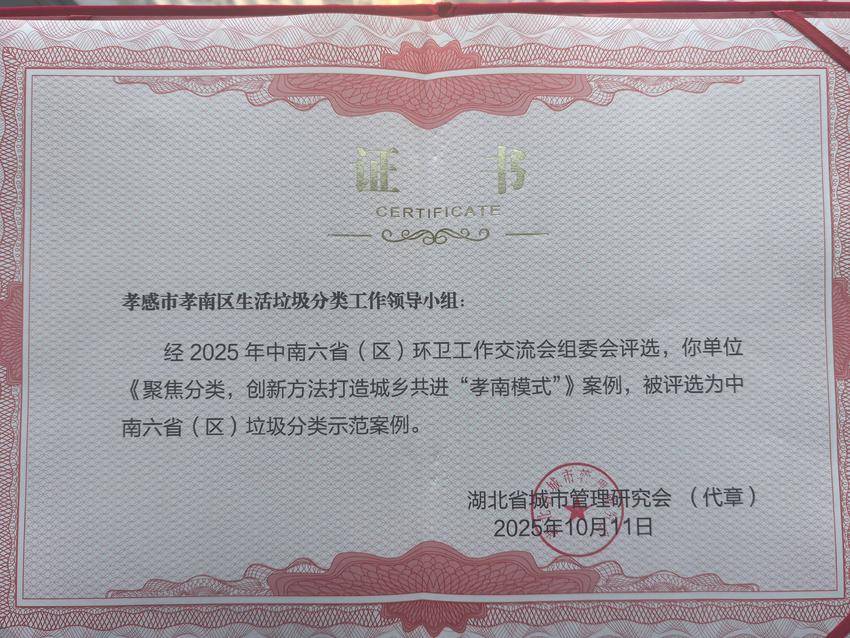 荣誉既是一种激励,也是前进的动力。孝南区城管局立足实际,不断探索创新垃圾分类方式,用更加务实的措施推动“小南模式”垃圾分类工作取得新成果、迈上新水平。
